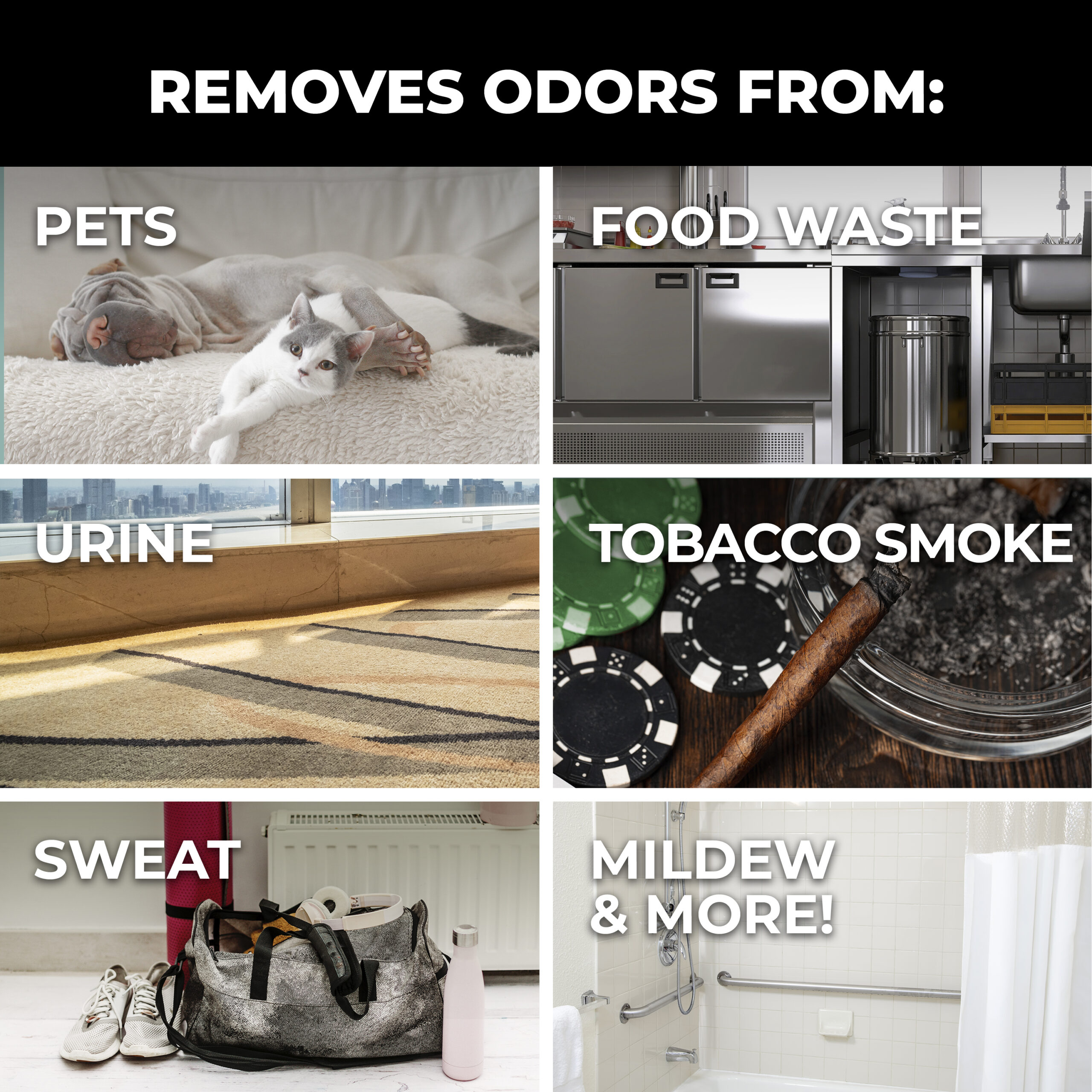 Simple Green Pro Odor Eliminator is a concentrated cleaner and long-lasting odor neutralizer that removes unpleasant airborne and surface odors caused by pets, urine, sweat, food waste, tobacco smoke, mildew and more, leaving behind an invigorating eucalyptus scent. Works great on carpet, bedding, upholstery, laundry, vehicles, dumpsters, trash cans, toilets, lockers, shoes, diaper pails, sports equipment, artificial turf, dog beds and crates – both indoors and out. Ideal for use in homes, office buildings, restrooms, restaurants, retail stores, schools, gyms, spas and wherever odors linger.